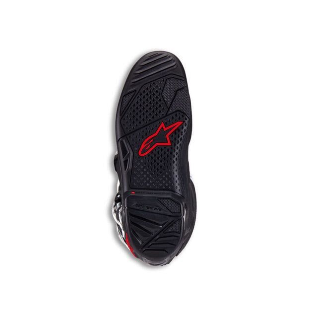 - הסוליה עשויה עם מחוון מגבלת שחיקה חדשני המוטבע באזור יתד כף הרגל. שכבה זו מציגה שכבה אדומה המתריעה לרוכב כאשר הסוליה בלויה וצריכה החלפה.