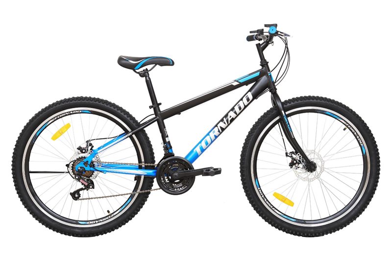 אופני הרים מבית טורנדו שנותנת חווית רכיבה מעולה בשבילי רכיבה ובשבילי 4x4 עם שילדת פלדה חזקה במיוחד, מעצורי דיסק איכותיים, צמיגים רחבים במיוחד AM וגלגלים עם דופן כפול, כדי להתאים את הנסיעה לשבילי עפר, 21 הילוכים שנותנים יותר גם בעליות